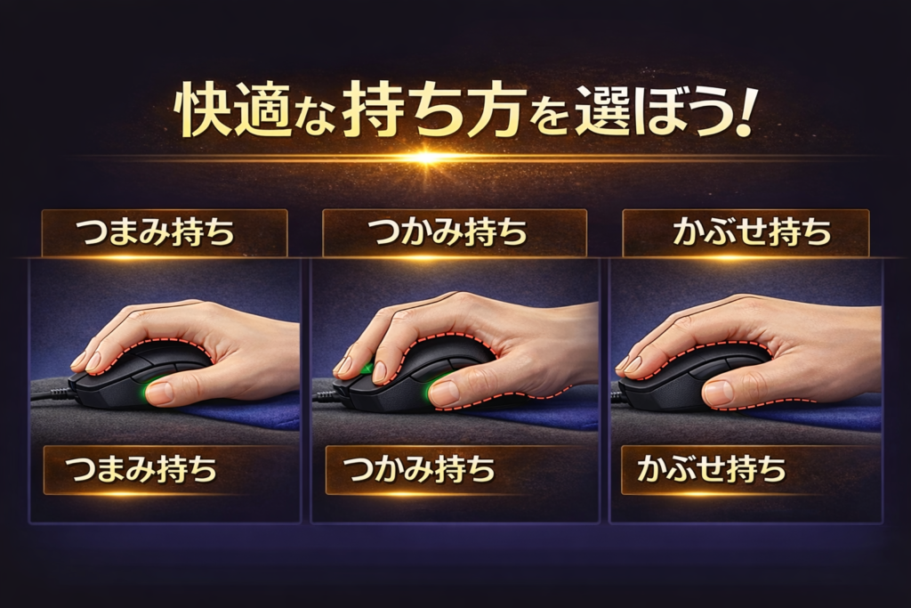 また、持ち方に合わせたマウスの相性があります。